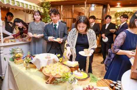 当館のデザートビュッフェでは、ケーキやゼリーなどはもちろん、アイスワゴンを使って3種類のフレーバーをご用意したアイスのご提供があったり、焼きマシュマロがあったり沢山の種類がございます!ただ取って楽しんででもらうだけでなく、体験型のビュッフェになっているので、皆様の思い出の残るのはもちろん、自然体で楽しめるコンテンツの一部でございます!