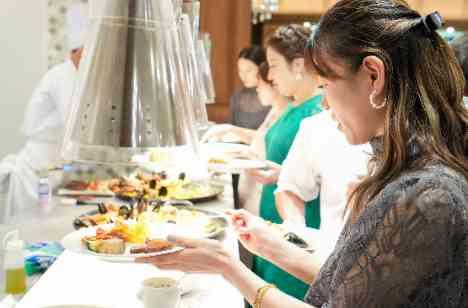 コンチネンタル横浜では、おふたりが離席されているお色直しのタイミングでお料理のおもてなしとして『グリルビュッフェ』がございます!メイン料理のお魚料理と、お肉料理のタイミングで、バーベキューの内容をビュッフェスタイルでお楽しみいただけるものになります!コース料理とは違い、好きな物を好きなだけ召し上がることができるので、満足感を特別感を味わっていただくことができます。