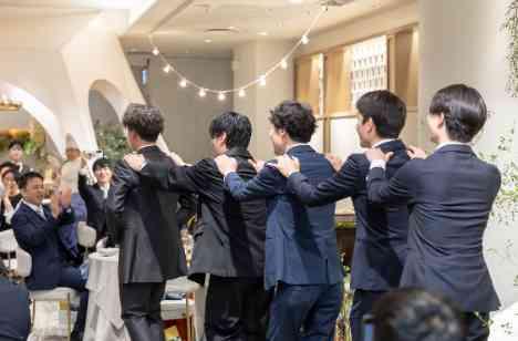 お色直しのご中座のエスコート役として、ご新郎様が選ばれたのは大切なご兄弟でした!5人兄弟で一緒に退場したいと考えたご新郎様は、皆さんと列車で退場したいとご希望!他のゲストの方も携帯を構えながら、盛り上がりながら見送ってくださいました。ご親族の皆様は、感動するか方もいらっしゃってとても素敵なシーンとなりました!