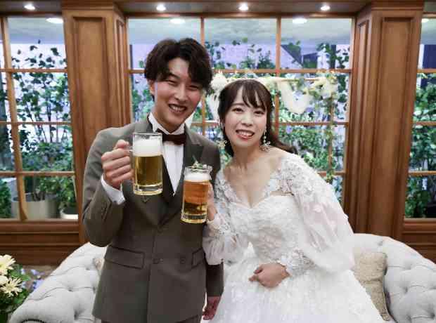 お酒も楽しみたいと考えたおふたりは、パーティーが始まってすぐにビールサーバーにてビールのご提供!ビール好きなおふたりもそうですが、ゲストの皆さまもビールで乾杯を交わし、緊張も和らぎいつも通りの自然体で楽しんでらっしゃいました。また、おふたりのお席がソファでおふたりがよりリラックスしてお過ごしいただいているからこそ、ゲストの皆さまも「写真撮ろ!」「乾杯しよ~!」と楽しい会話で溢れていました!