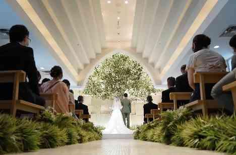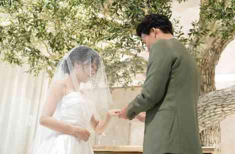 陽光と緑に包まれるナチュラルな雰囲気の中、執り行われたおふたりのセレモニー。リングボーイ&ガールの登場シーンでは、おふたりもゲストも思わず笑顔に。大きなシンボルツリーの下で誓うおふたりを温かな表情で見守る親御様の姿が印象的でした。