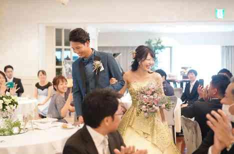 「ゲストが笑顔で過ごせるように」パーティスタート前の時間からゲストが楽しめるアイテムを貸切のラウンジ空間にたくさんご用意されたおふたり。特にお色直しのタキシード&カラードレスの色当てクイズは大好評!入場シーンは大歓声に包まれました。