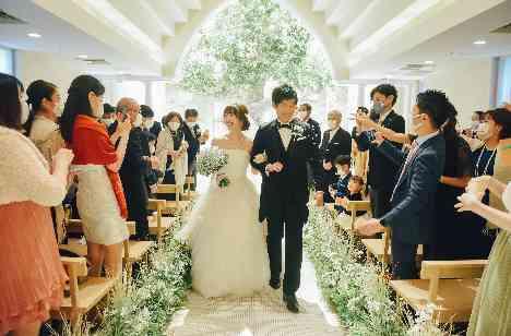 祭壇に佇む大きなシンボルツリーが印象的な、最上階のセレモニースペース"LIFE tree(ライフツリー)"で執り行われたおふたりの挙式。柔らかな光と緑溢れる空間の中、ゲストの笑顔に見守られる、温かな挙式が叶いました。
