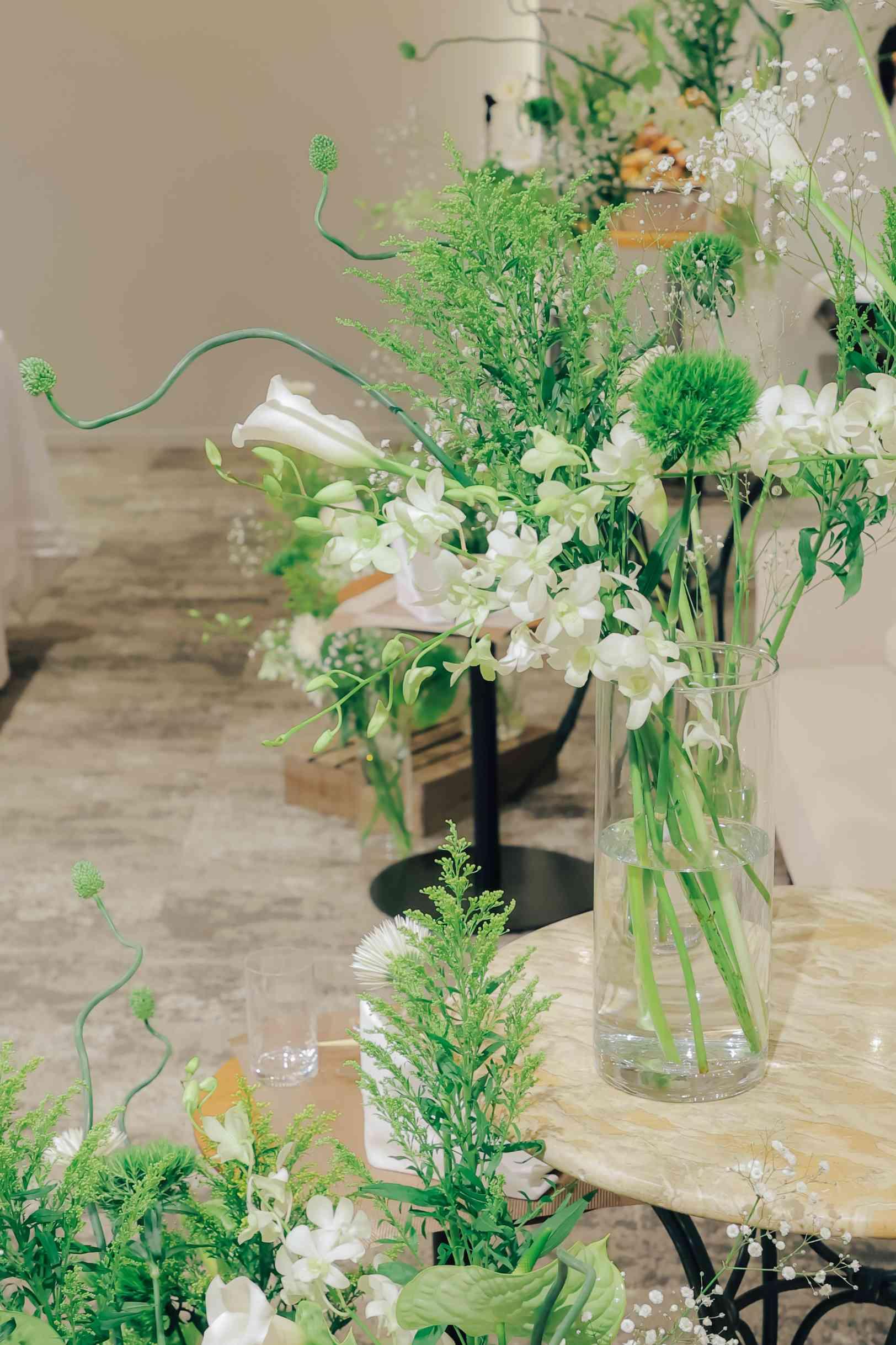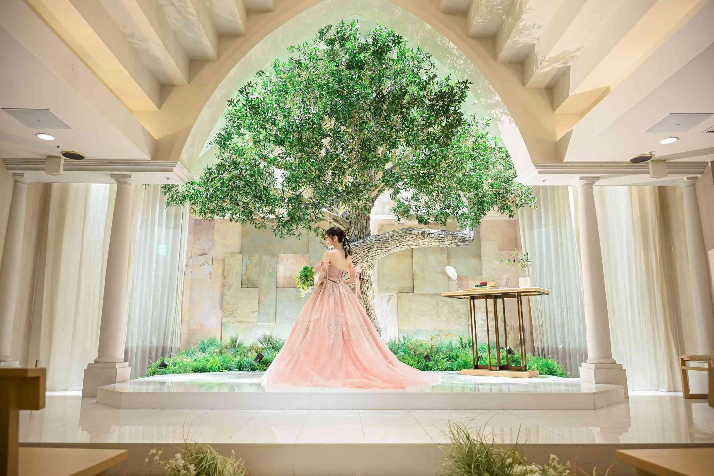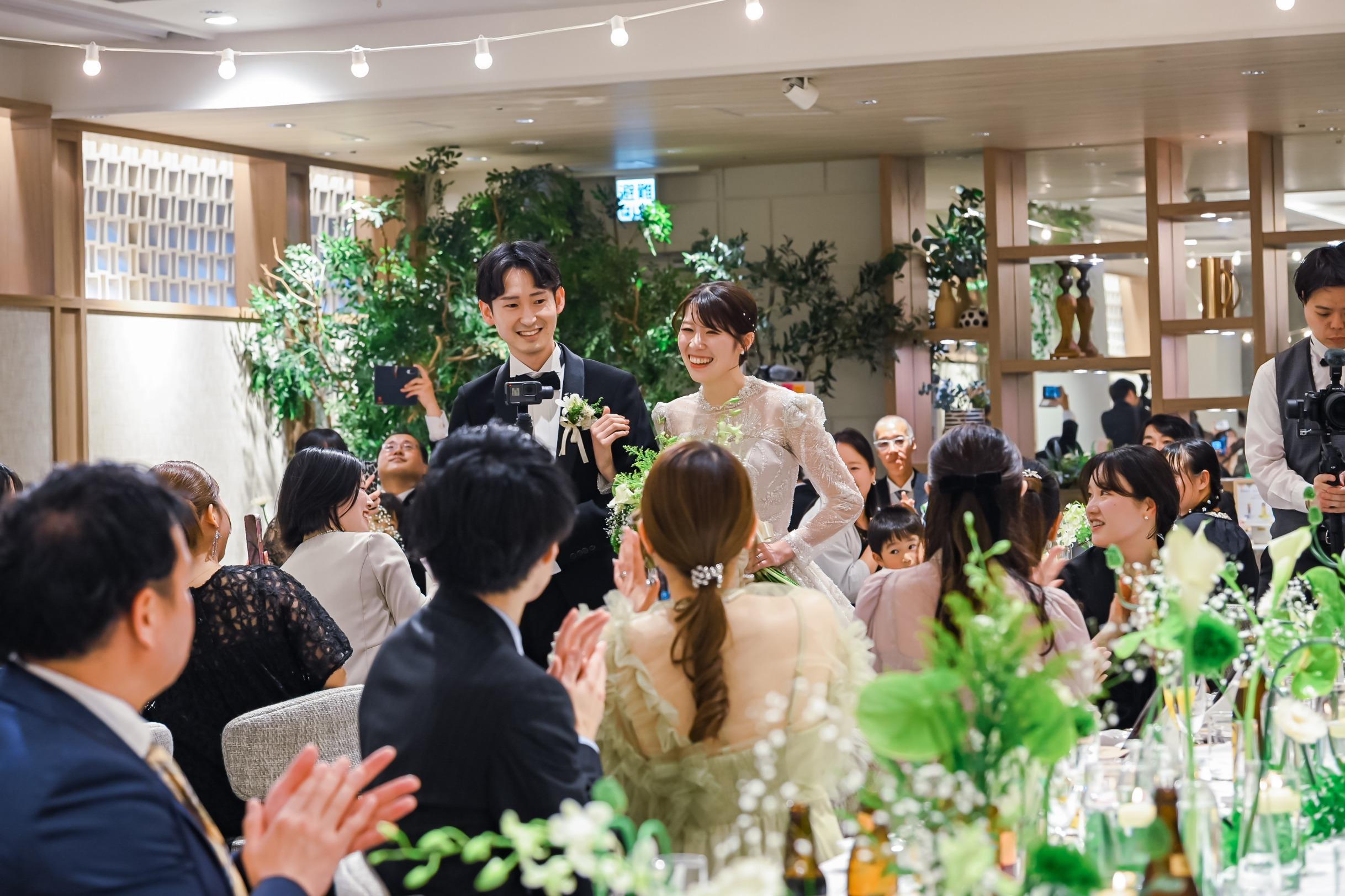 Season:Summer/Party Space:Top of Bay 結婚4年目に式を挙げた私たちのテーマは「花婚式」5年目の「木婚式」への繋がりを表現し、未来に続く家族との絆を強くした一日に