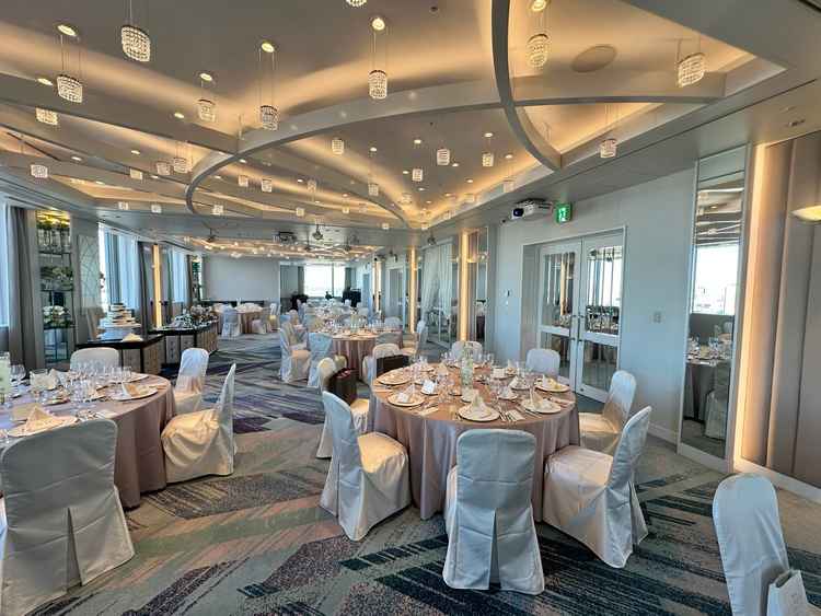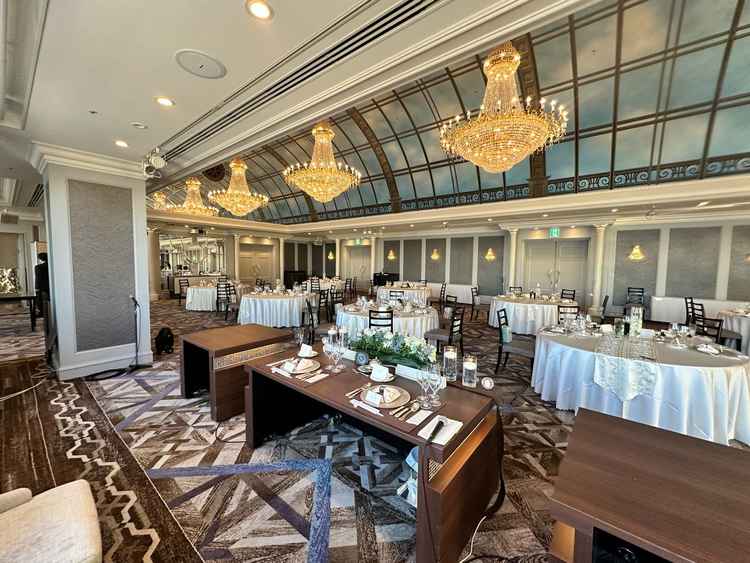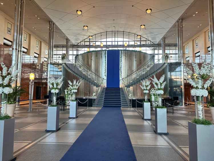 装飾品なども含めて充実した設備が整っていると感じました。エレベーターも8機あるため、会場への移動もスムーズに進めると思います。