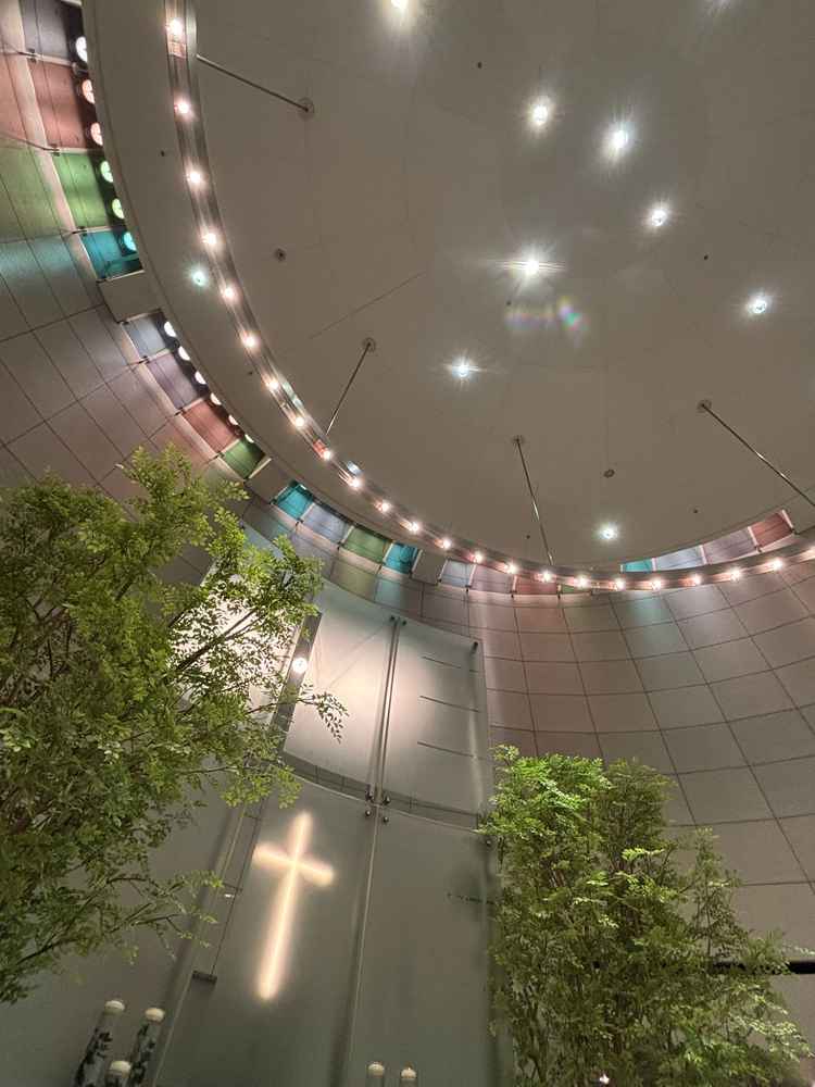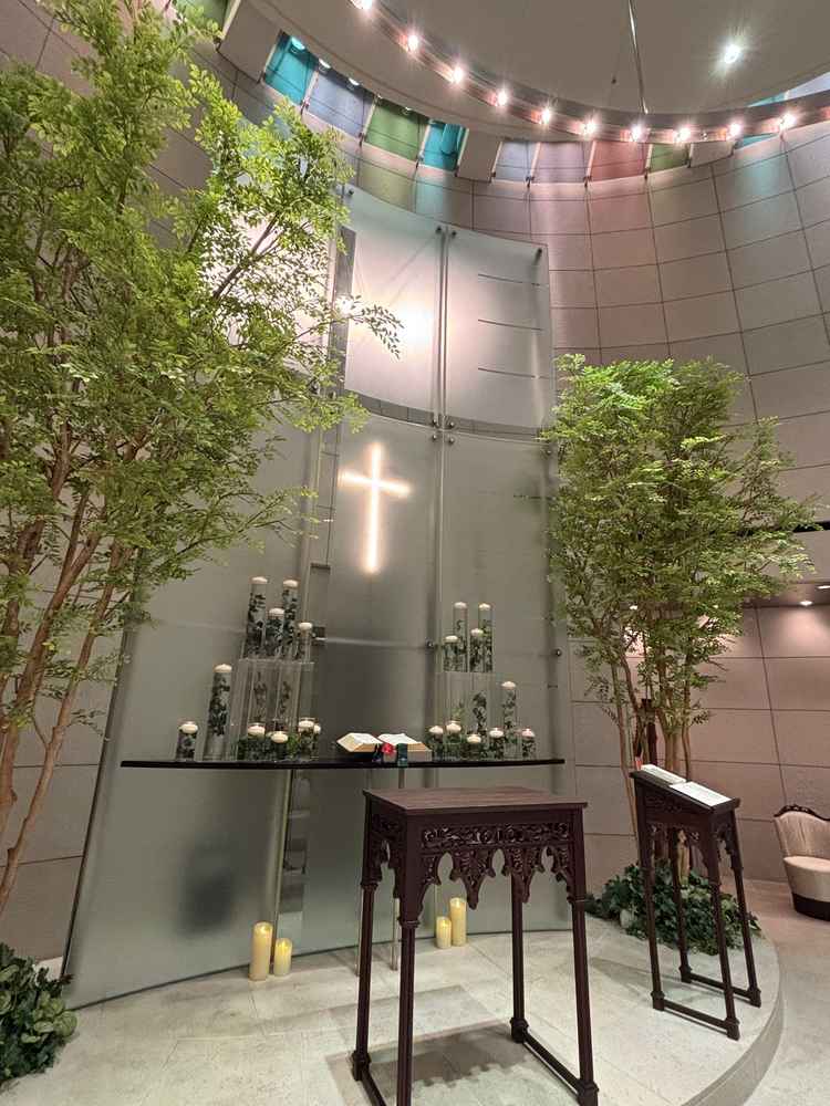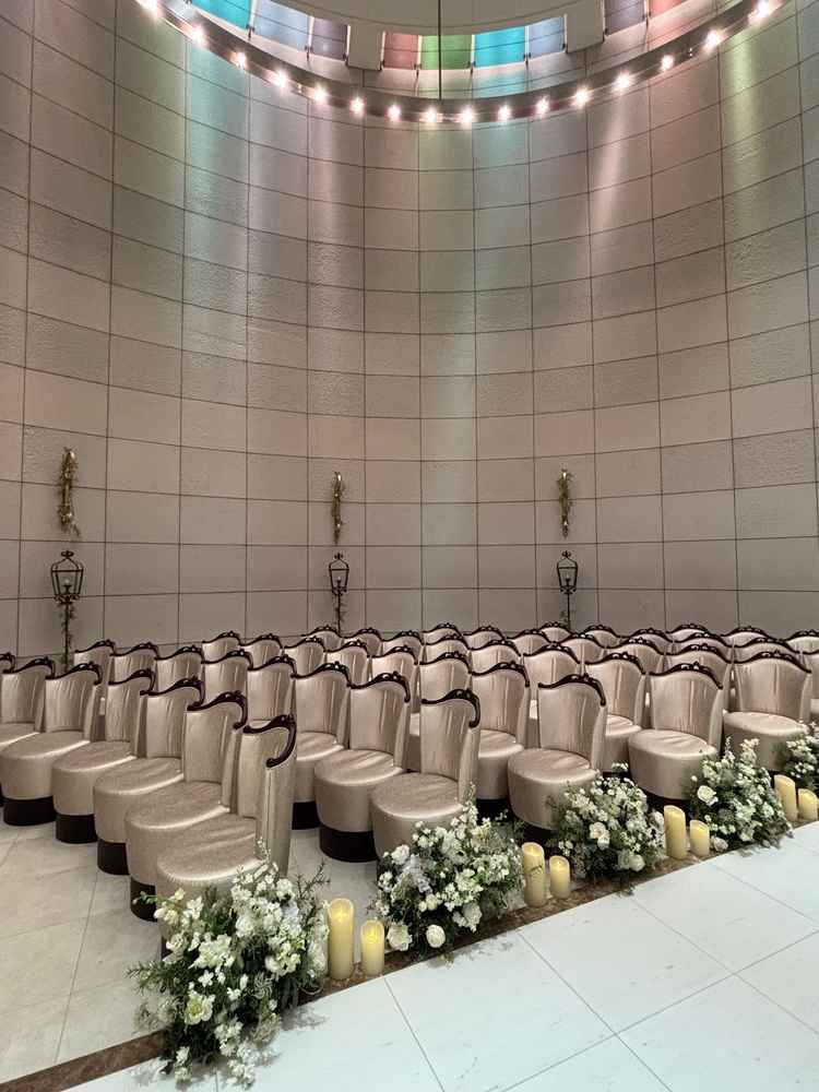 チャペルはあたたかいぬくもりを感じる雰囲気で素敵だなと思いました。チャペルの座席がベンチではなくやわらかい椅子なのも良いと思いました。