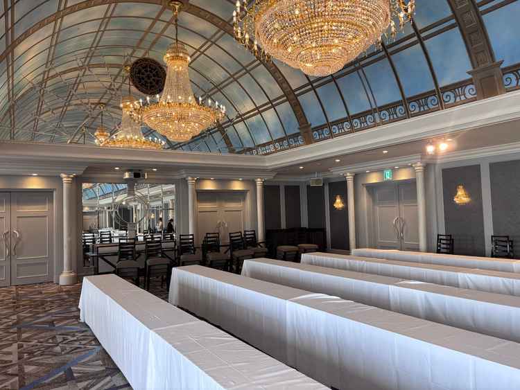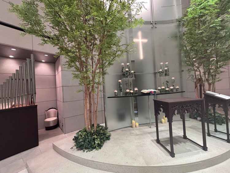 チャペル周りの通路が、透明なガラス?で覆われていて、外感かつ全天候対応な所がとてもよかった。披露宴会場についても、廊下、会場ともに景色がとてもよく、参列者が喜びやすい環境かなと感じた