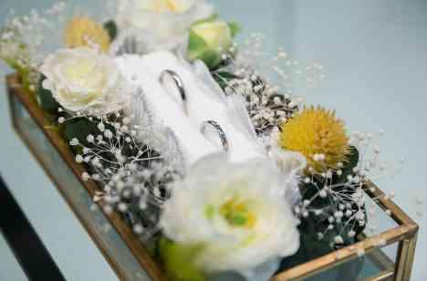 リングピローとは、結婚式当日に結婚指輪を交換するまでの間、指輪を置いておくアイテムのことです。リングピローを日本語に直すと「指輪のまくら」という意味で、リングクッションと呼ばれることもあります。こちらはなんとご新婦様のお手作り!とても器用に作られており、お式後はインテリアとしても活躍しそうなデザインですね♪