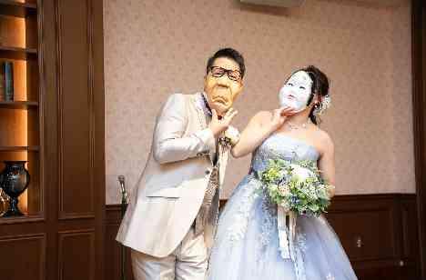 みんなが楽しめて笑顔になるような演出をしたいということでお二人でお面をつけてご入場しました。お二人らしい発想と演出で、会場内はとても盛り上がりました! 再入場の際もいろいろな演出でインパクトをつけることができます! 感染対策もばっちりの状態でお二人とゲストの皆様一緒にご披露宴を楽しまれておりました♪