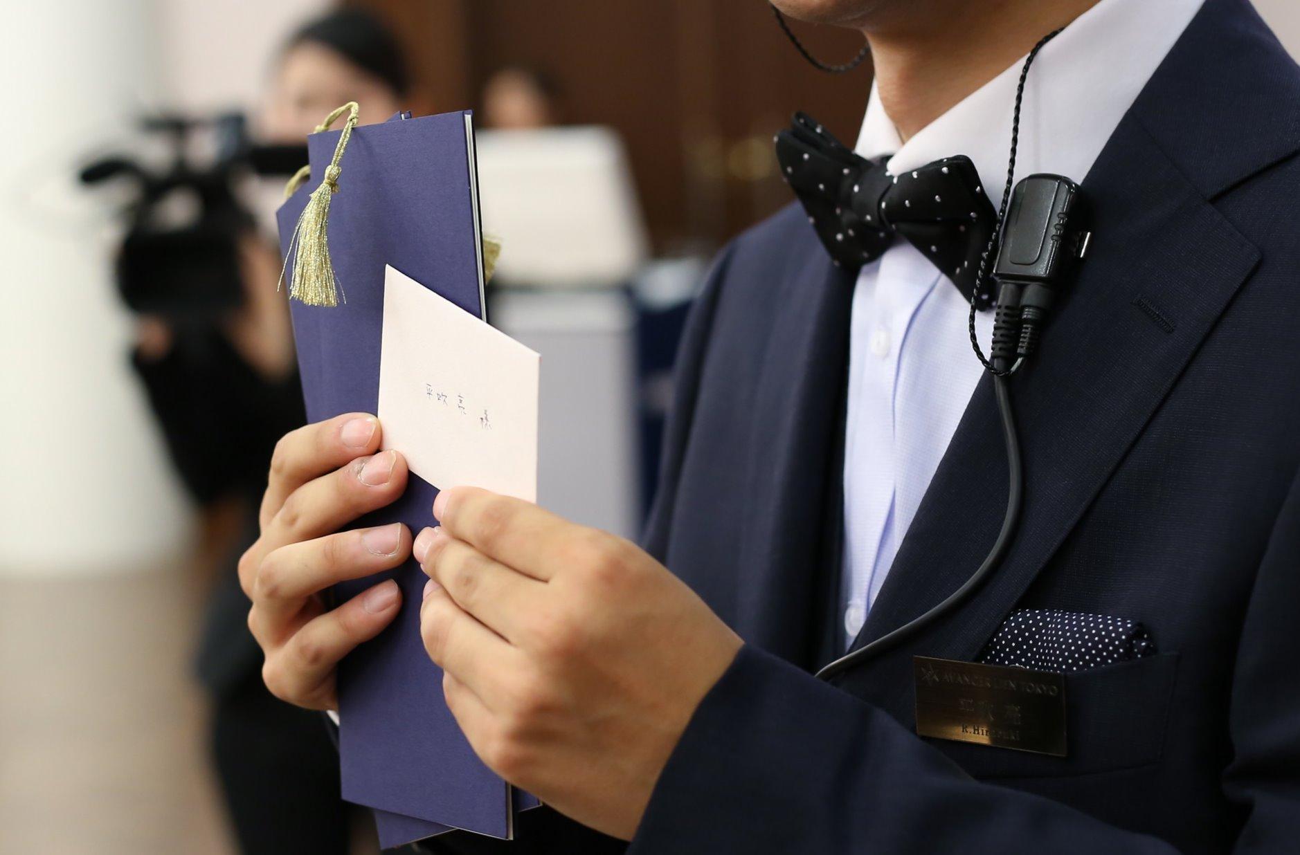 お仕事がお忙しい中、プランナーとメールや電話で連絡を取り合い準備されてきたおふたり。当日はサプライズでお手紙と蝶ネクタイをプレゼントされてました☆
