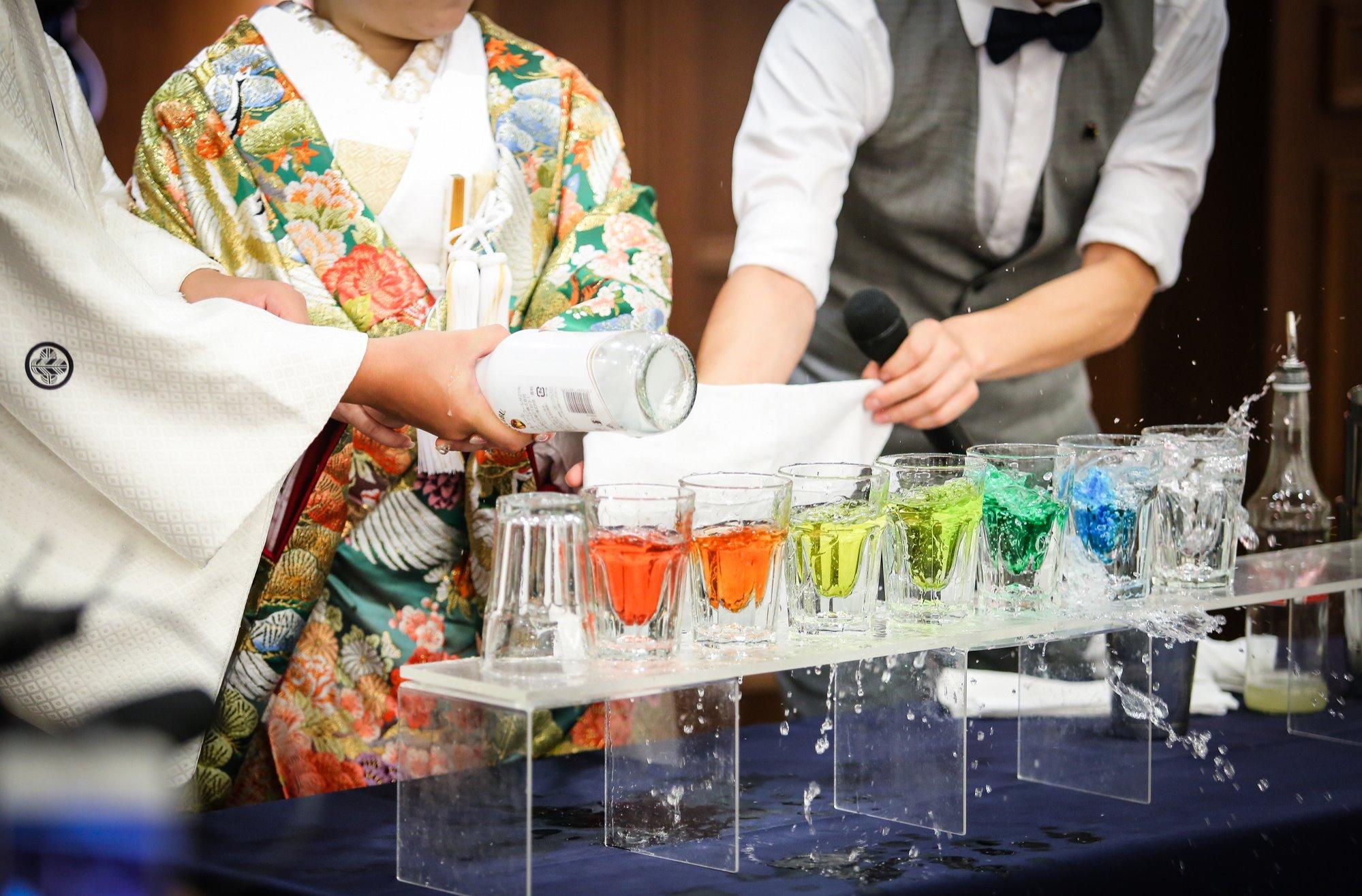 おふたりがお酒好きのゲストの方々の為に特別に用意したフレアバーテンダー!オリジナルドリンクを振る舞い、ショーの終盤にはおふたりも参加の演出でゲストからは歓声が上がってました♪