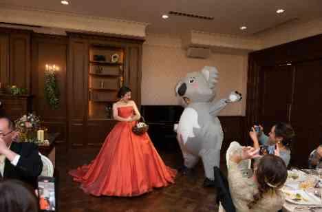 お色直しはパンダ・ウサギ・コアラの曲でご入場されたお二人♪ご新婦様の腕にパンダとウサギがいて、コアラは何とご新郎様でした!登場したときは会場内はとても大きな笑いに包まれて、終始皆様笑顔でした(^^) テーブルラウンドと呼ばれる皆様のテーブルにお二人が進まれる際もコアラで撮影をしており、お二人のテーマである笑いが絶えない楽しい結婚式となりました♪