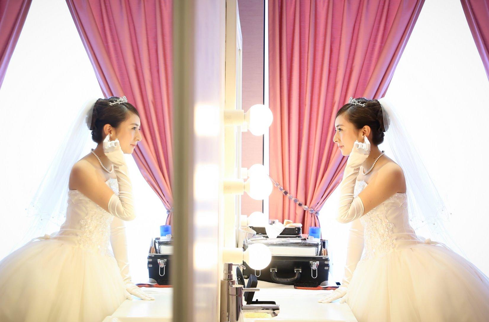 可愛いドレス選びも楽しめ、ドレスに合わせたヘアメイクも1か月以上前から検討。ブルーのカラードレスもお気に入りでした。