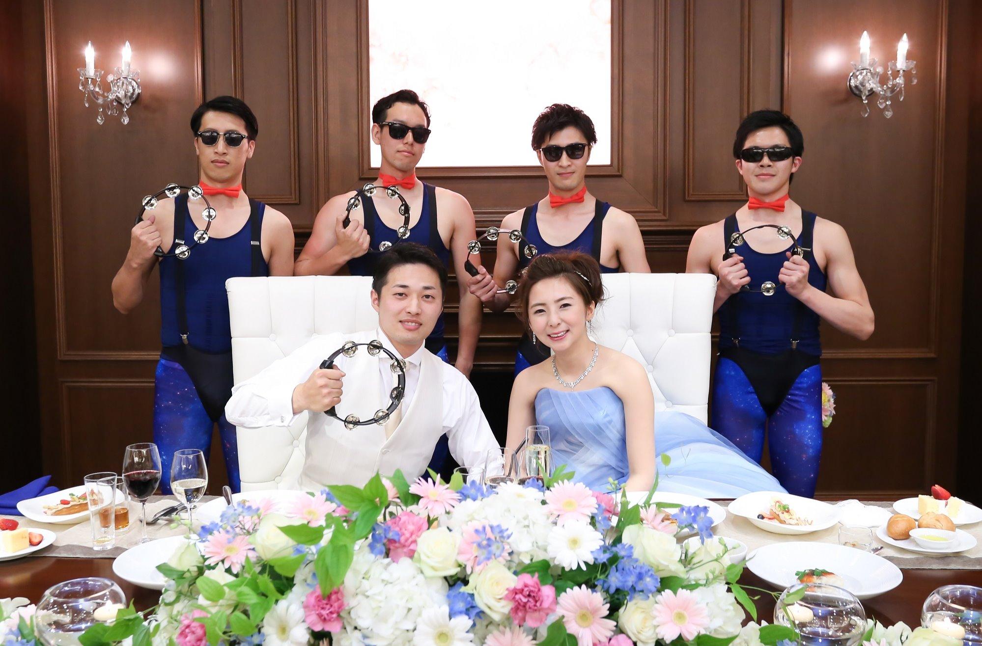 新郎ゲストのサプライズ余興は会場も大盛り上がり!途中新郎も参加し更に熱気に包まれました。