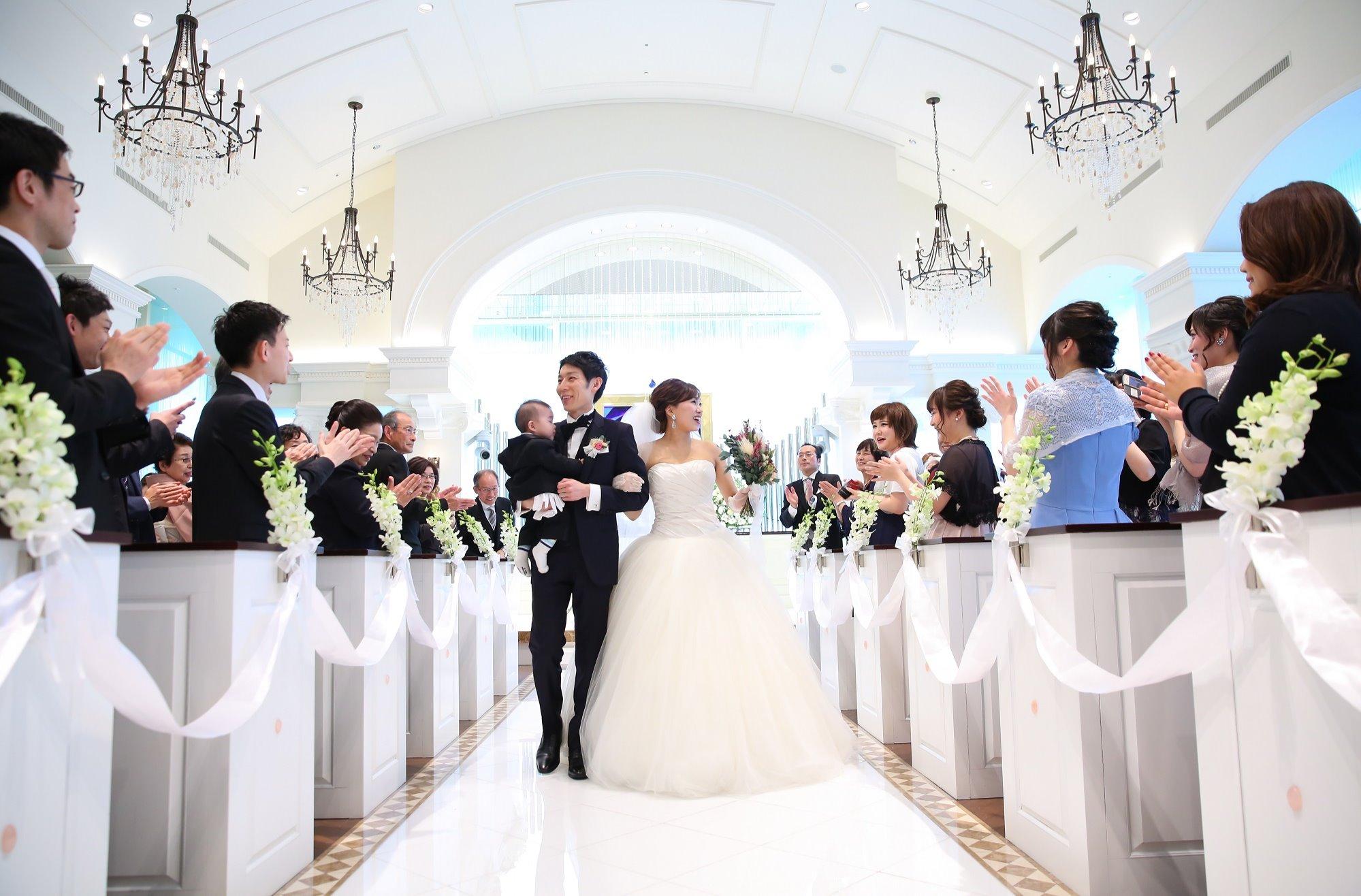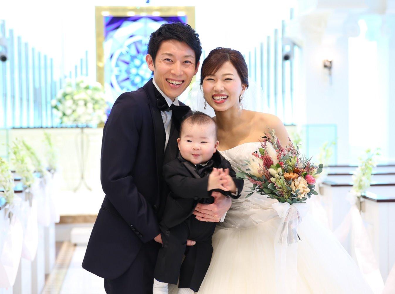 お子さまも一緒なので、人前式で家族の絆を誓いました。ゲストからの微笑みの祝福を受けて感動的な1日の幕開けです! だん君もニコニコ笑って癒しの笑顔を振りまいておりました☆