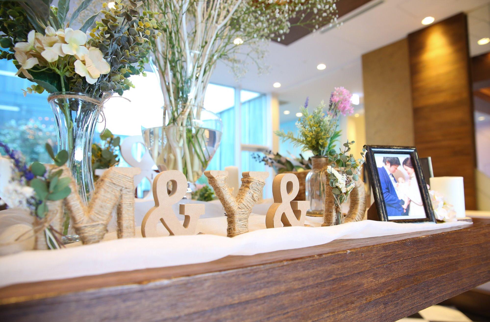 1階ロビーの飾りつけもテーマを揃えてご準備☆ドライフラワーやフルーツを使った可愛いウェルカムグッズはゲストからも「おしゃれー」と大好評でした!