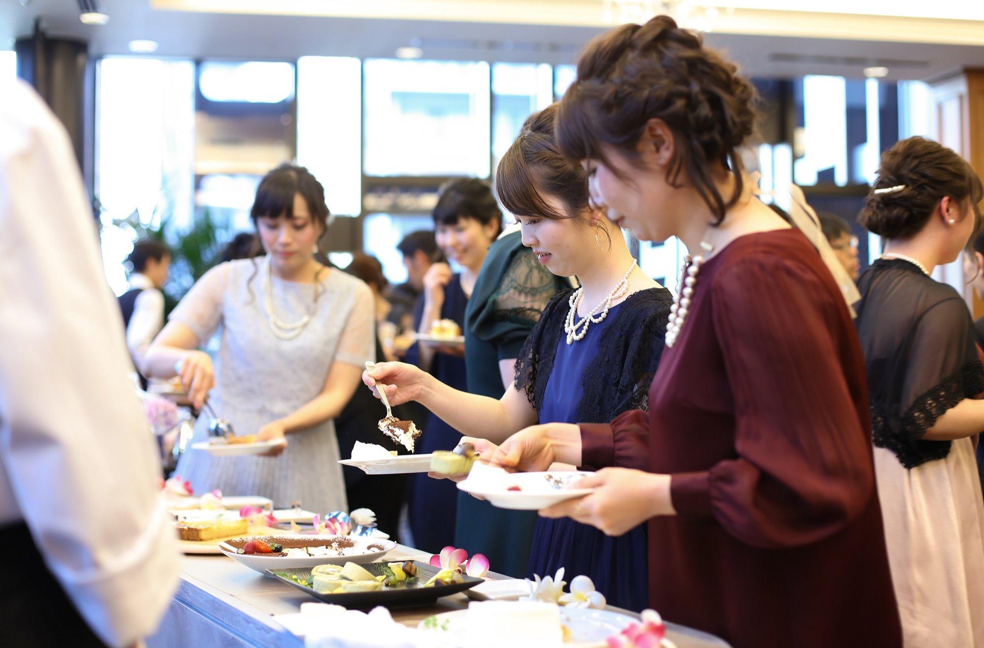 華やかなケーキが並ぶデザートビュッフェ。ゲストが移動する中、おふたりともたくさん写真をとってもらえます♪♪