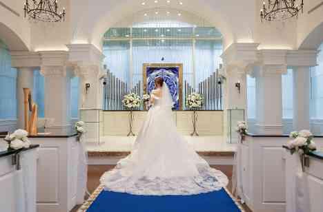 アヴァンセリアン東京のバージンロードは白かブルー2種類からお選びいただけます! お打合せ中に『どっちにしようかな、、、?』という相談をよく受けますが、選ぶポイントの一つとして、『ドレス』で選ぶのも良いかと思います! お写真のようにレースが多いドレスですとブルーの方が透けたときにレースがよりくっきり見えるので、お写真映えも間違いなし! ぜひご参考くださいませ♪