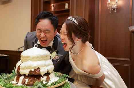 お二人はお肉が大好きという事で、こちらを共同作業としてハンバーグにチーズをかけていただきケーキ入刀の代わりを行いました!アツアツのチーズとハンバーグをファーストバイトしていただき、のちにゲストの皆様にもご提供いたしました! その他にも『幸輩丼』と名付けて一部のゲストの方にはシェフオリジナルの豚丼をご提供しました! 当館はお客様のご要望に合わせてお料理にもオリジナルティを加える事ができます♪