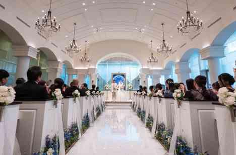 アヴァンセリ案東京のチャペルは白を基調としており、ブルーのステンドグラスがお二人をより輝かせてくれる会場でございます。バージンロードは20メートルで大理石とブルーからお選びいただけます。 衣装に合わせたり、会場のコーディネートでご検討されるお客様もいらっしゃいます! ご紹介しているお二人は大理石でお式を行いました!