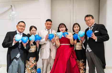 実はご新婦様のお腹の中にはお二人のお子様がいらしゃいました! 性別はご新郎ご新婦様のみ知っており、親御様含め、他のゲストの皆様にもこのタイミングで発表となりました! 皆様ドキドキの中、ご両家の親御様に代表してお手伝いしていただき、男の子だったらブルー、女の子だったらピンクの風船が中から出てきます! お二人のお子様は『男の子』でした!おめでとうございます!
