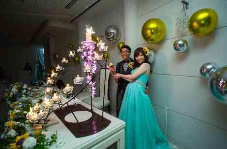 お色直し後は、キャンドルイリュージョンの演出を取り入れ、会場全体を盛り上げると共に、華やかな雰囲気にしました。お子様も一緒に盛り上がれたり、シャッターチャンスもバッチリな演出。キャンドルのやさしい光で、会場全体を明るく優しい雰囲気に包みました。