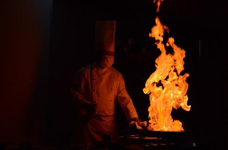 お料理をご案内する際に、おふたりはシェフのフランベ演出を取り入れました!会場全体を暗くした状態で、シェフがワインを使って炎を披露する演出は、ゲストも楽しめる演出の1つ!演出や余興等を入れなくても、見て楽しめる演出になるので、ぜひご結婚式に取り入れてみてはいかがでしょうか。