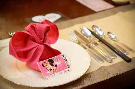 ディズニー好きということもあり、テーブルのコーディネートをディズニーで統一しました。席札をパークチケットモチーフにしたり、ナフキンをミッキー折りにしたりとオリジナリティを出しました!!写真映えにもなるテーブルコーディネート。ぜひ真似してみては、いかがでしょうか。