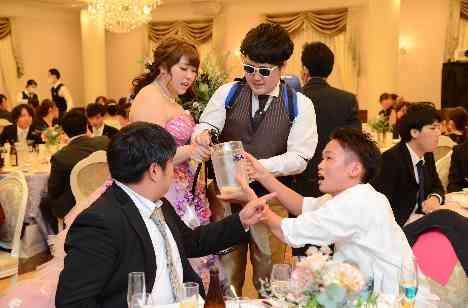 披露宴の中で、ゲストと楽しめる演出を入れたいと考え「しょいこビール」の演出を取り入れました。お色直しの入場と共に、ビールを背負いゲストの方にサーブするというパフォーマンスを取り入れることで、ゲストの方にサプライズ演出になると共に、写真映えする演出となりました!