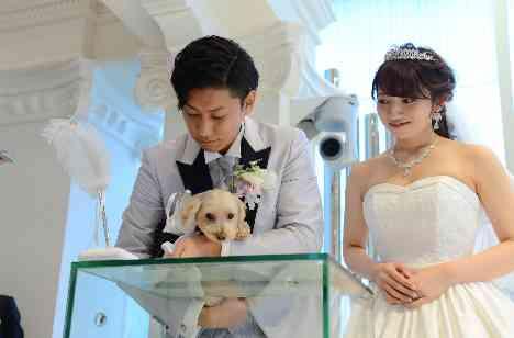 ペットも大事な家族の一員。結婚指輪を届けてくれるリングドッグの役目と結婚証明書におふたりのお名前と愛犬の肉球でスタンプを!ゲストからも「可愛い!」というお声があり、アットホームな和やかなお式となりました。