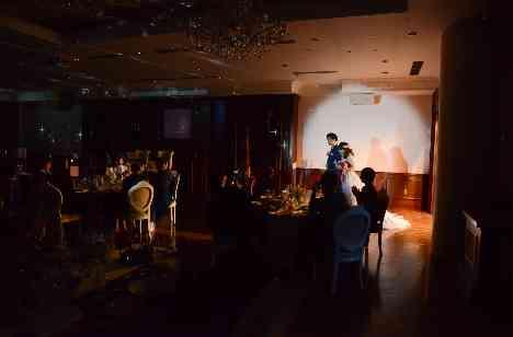 おふたりの入場を色濃く、さらに華やかにしてくれるプロジェクションマッピング!光の演出はあるけれど、プロジェクションマッピングはまだまだ新しくて他と被らない!音と光に包まれて特別な入場シーンとなりました!