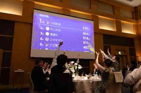 新郎新婦に関わるクイズを10問出題。 正解者上位3位までに新郎新婦から素敵なプレゼントが! 答える速さでもポイントが加算され、順位が問題ごとにリアルで映し出され、会場は大盛り上がり!! 新郎新婦もゲストともに笑顔とたくさんの歓声が飛び交います。 小さなお子様から大人まで全員で楽しめる余興です!