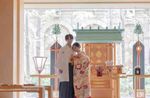 着物を着て、人前式をご希望の方は神殿に装花を飾ってみては?和のバージンロードを作ることも出来、着物を着てお父様と想い出のワンシーンを。 ご成約特典は最大132万円の優待。新郎新婦衣裳や挙式料等。新大阪駅から無料直通バスで安心。