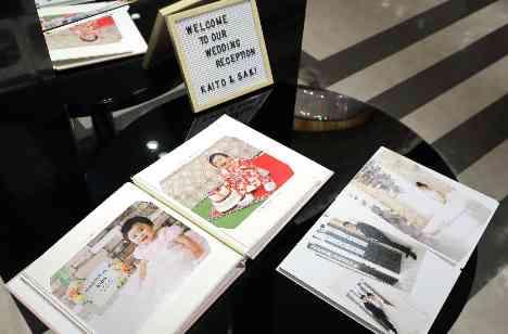 「やりたい事はたくさんあったけどゲストの楽しめるような空間にしたいと思いながら打ち合わせしていました」と新郎新婦様。打合せ期間中に軸になる思いを常に持って、ひとつひとつのアイテムをお選びいただきました。お子さまのお写真やさまざまなアイテムなどをこだわり、そして厳選して当日は受付や披露宴会場までに飾っていただきました。