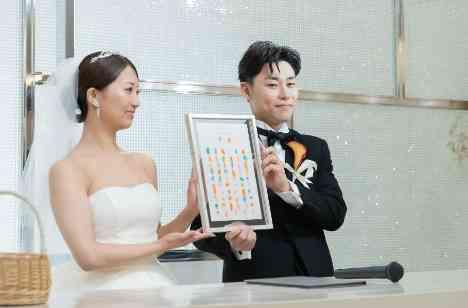 新婦様のドレス姿を楽しみにしておられた新郎様♪ スワロフスキーのバージンロードとおふたりのお衣裳がとても美しくマッチしており、当日は大切なゲストに見守られながらの感動的な挙式となりました! その他にも自分たちらしさが出るようにゲストの皆様と作成した結婚証明書を用意して、オリジナリティ溢れる笑顔いっぱいの挙式となりました!