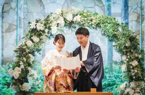 皆様の前で深い愛を誓う和装人前式