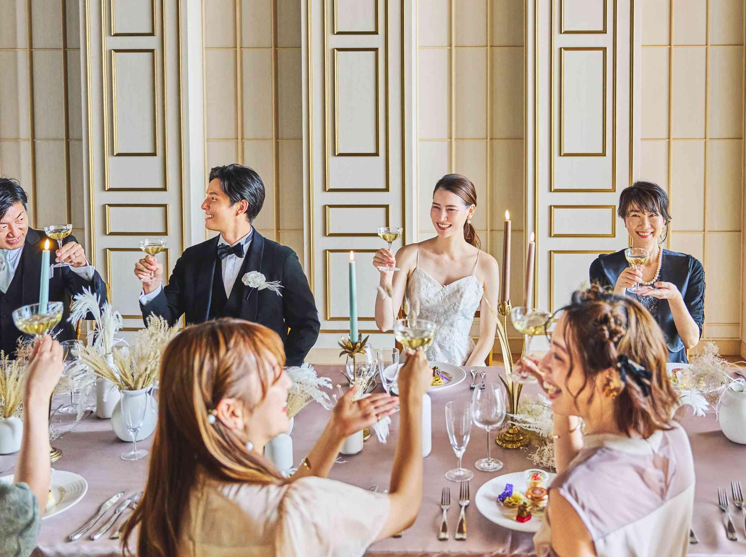 ご親族様だけのお食事会からゲストをたくさんお招きする笑顔あふれるパーティまで、最大200名まで招待できる4つのパーティ会場と洗練されたおもてなしで、お二人の理想を叶えます。