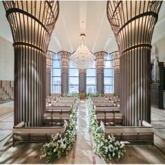 「人生の出会い」の象徴でもある木の幹をイメージした支柱が印象的なチャペル。三重奏の生演奏が挙式を彩り、芸術と上質さが共鳴するひとときをお届けします。
