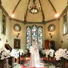 【全天候型の独立型チャペル】美しく輝くステンドグラスと赤のバージンロードが魅力の独立型チャペル。全天候のチャペル前広場で、挙式後はフラワーシャワーやバルーンリリースなどゲストからの温かい祝福を。