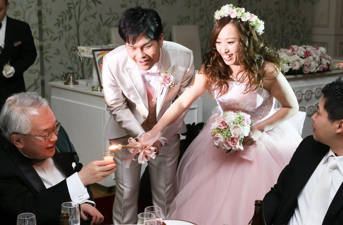 結婚式当日はお二人の親友の入籍日。親友には内緒でウエディングケーキのサプライズバイトを企画されたお二人。ビックリした様子の友人と心温まる一時でした。一番の演出はお二人がお互いのサプライズ演出!お二人には知られない様に余興者と内密に打合せ、当日はお二人の嬉しそうな恥ずかしそうな顔を見れ大成功でした!