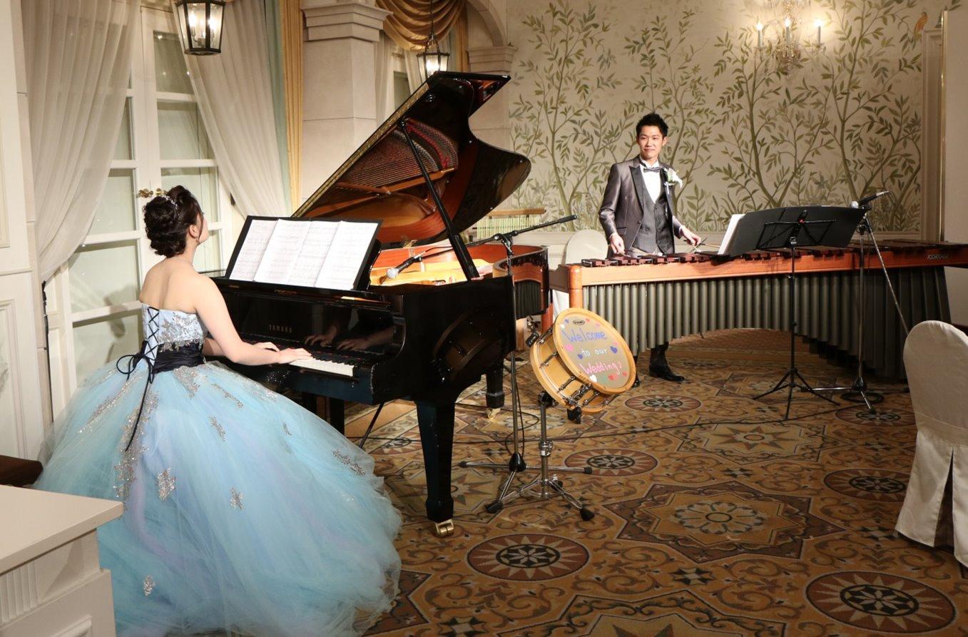 沢山の式場を見学した中で、モントレ大阪はとてもアットホームで私たちに寄り添ったプランを提案して下さいました。テーマは3つ、演奏が出来る事、アットホームな雰囲気である事、シンプルである事。音楽が共通なお二人の為、音楽中心にグランドピアノはマストでお願いしました。