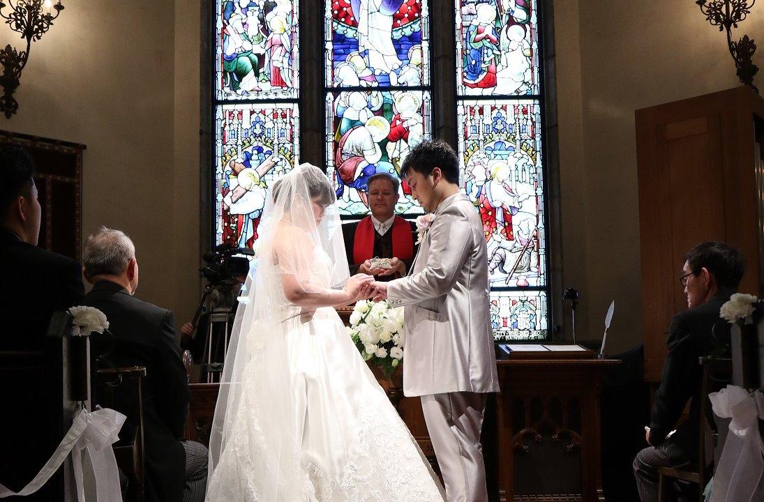 ステンドグラスと木のぬくもりが印象的な一番お気に入りのチャペルです。当日はそんな美しい空間に大好きな人たちが集まってくれているのを見て、本当に感動しました。
