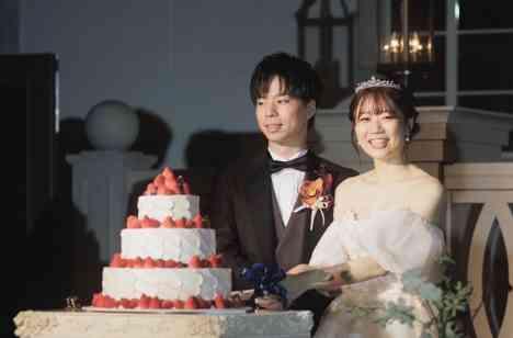 プラン内のイミテーションケーキ(白いクリームにいちごが飾ってある一番シンプルなもの)です。 オプションで上の段を生ケーキに変更したので、ファーストバイトの演出も問題なくできました。ゲストからは「料理がすごく美味しかった」と言ってもらえることが多く、こだわったポイントなので満足してもらえて嬉しいです★★★
