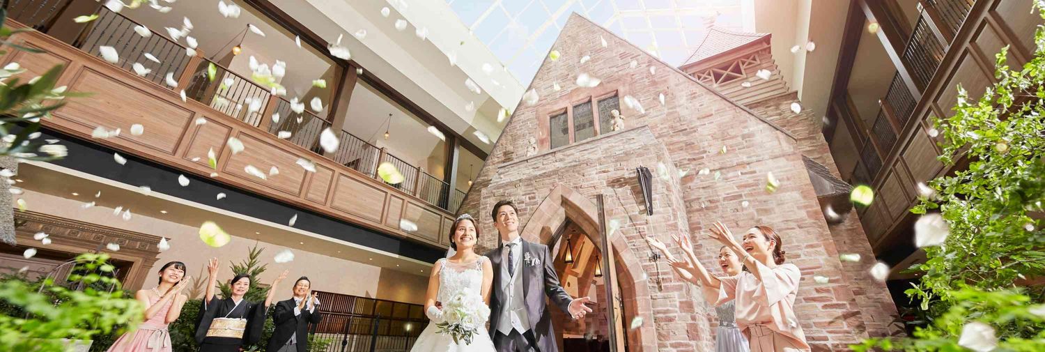 ホテル館内の全天候型ガーデン+独立型の大聖堂。英国の美空間で、上質なホテルのウエディングが叶う。自然光と開放感あふれる3つの貸切披露宴会場!なんば駅から直結好アクセス。