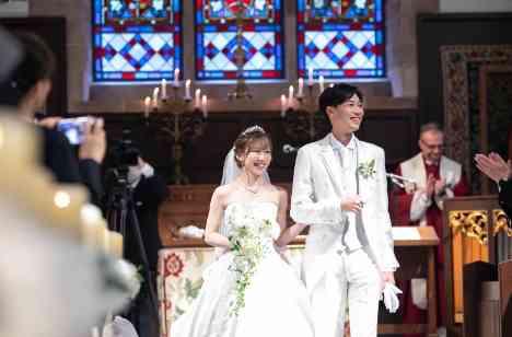 モントレグラスミア大阪で結婚式をしたいと思ったのは、ここでプロポーズをしてもらったから、というのが1番の理由でした。チャペルもとても素敵で、陽の光がステンドグラスから降り注ぎ、大理石のバージンロードに影を落とす様子はとても幻想的で、響き渡る生演奏の音色と合わさり、とても神聖で夢のような空間でした。一生の想い出に残るセレモニーになったと思います。