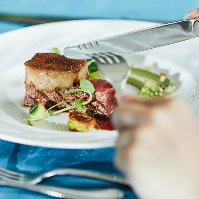 モントレグラスミアの看板メニュー「黒毛和牛」をフェアでご賞味! ナイフを当てただけでほろほろと肉が切れるほど柔らかい、グラスミアの看板メニュー 「黒毛和牛」。濃厚で芳醇な肉料理は試食フェアでぜひ