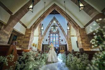 豊かな緑と季節の花々、トップライト越しの優しい陽光に包まれた空間に佇む、静謐で素朴な優しさに満ちたチャペル。この緑豊かな丘陵地帯に実在する、アーツ&クラフツ様式の美しい教会をモチーフに設計いたしました。