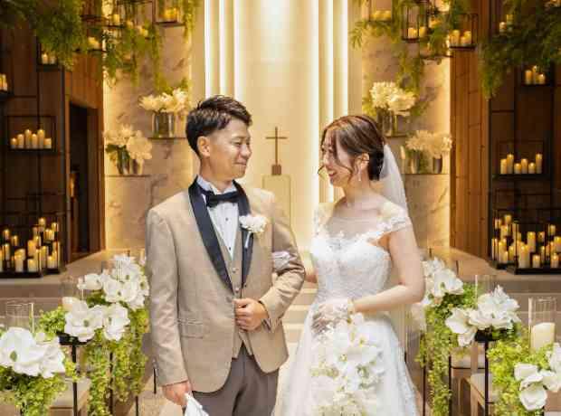 「チャペルの雰囲気が好きだったこと」「遠方ゲストが多く立地が良かったこと」 が大きな決め手でザ ストリングス 博多を選んでくださったおふたりです。 -Bride's Room- Dress:KELLY FAETANINI(037) 華やかなレース使いが主役級の存在感をアピールする一着 トップに施した花や葉のレースは肩へと流れ自然を表現しています