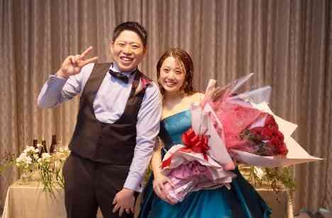 結びのシーンが始まると思いきや…ご新郎様からご新婦様へサプライズのプレゼントが…♡「今までサプライズをしてきたが ばれてしまっていたから今回は絶対に大成功させたい!」という強いお気持ちがございましたのでご新婦様には内密に進めてまいりました。心を込めてお手紙を読みバラのお花束をお渡ししご新婦様へのサプライズは大成功!!可愛い笑顔で喜んでいただけました♪