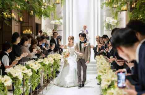 お2人はキリスト式で挙式を行いました。 親御様へ感謝の気持ちを伝えたいという想いがあり、 挙式の前にチャペルにてファミリーミートを行いました。 これまでの感謝の気持ちや日頃伝えれなかった想いを伝える大切なひとときをご家族で過ごしました。 写真の様子はおふたりのご退場シーンですが、温かい拍手に包まれながら結びとなりました。